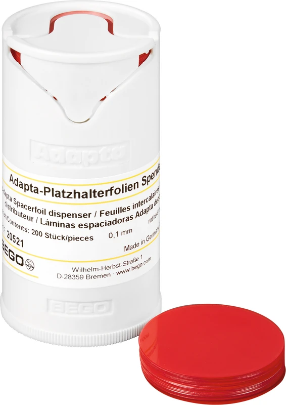For enkel og presis dypforming av kronekapper. En jevn minste veggtykkelse sikrer høy stabilitet i kronekappene. Ideell for dobbeltkronteteknikk, med fresevoks overtrukket gir Adapta-kappen høy sikkerhet mot utilsiktet gjennomfresing helt ned til “”tann””-stubb. Den systematisk anvendte 0,1 mm tynne undertrekksfolien skaper det nødvendige, definerte klaringsrommet for festematerialet.
