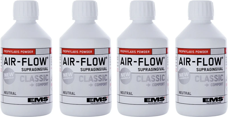 Utviklingen av natriumbikarbonatpulveret AIRFLOW® CLASSIC Pulver: KOMFORT. Kornstørrelsen er redusert med nesten 40 % fra 65 µm til 40 µm for høyere pasientkomfort. Pulveret har en behagelig smak og etterlater en behagelig munnfølelse og er like effektivt i fjerning av biofilm, sterke misfarginger samt ung tannstein. Den reduserte kornstørrelsen og de forskjellige smakene gjør profylakse for pasientene dine betydelig mer behagelig.