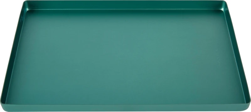 De elokserte aluminium-trayene er tilgjengelige med eller uten perforering og i fem farger – rød, grå, blå, gul og grønn. Lokket må bestilles separat. Ved bruk av kjemikalier under rengjøringsprosessen kan det oppstå misfarging. (L:284 x B:184 x H:17mm)