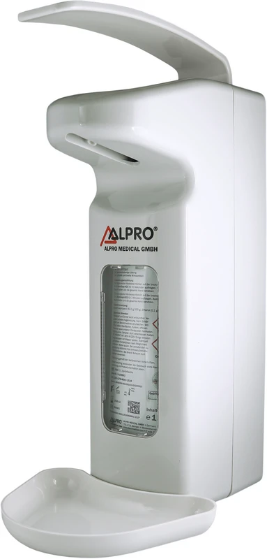 Universelt dispenseringssystem for såpe og alkoholholdige løsninger, inkl. dryppskål. Egnet for 1 L og 500 ml Euroflasker.