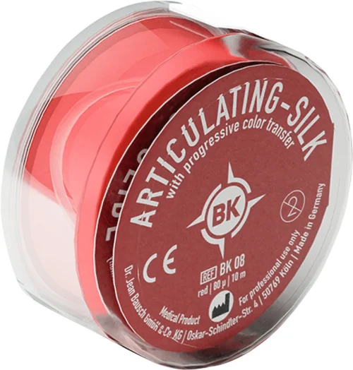 Bausch artikulasjonsseide er en høykvalitets naturseide med de samme egenskapene som vårt artikulasjonspapir med progressiv fargetoning 200 µ. Seiden er helt rivesterk og tilpasser seg optimalt til høyder og fossae på grunn av sin lave tykkelse og fleksibilitet. Tegningen av seide er ekstremt presis og egner seg derfor for totalprotetikk. Naturseide består av såkalte fibriller, en rørformet proteinstruktur, som på grunn av sin beskaffenhet har en svært høy fargeoppsamlingskapasitet. For bruk på modellen er seide derfor spesielt egnet, da et strimmel kan farge opp til ti ganger og dermed er ekstremt økonomisk i bruk.