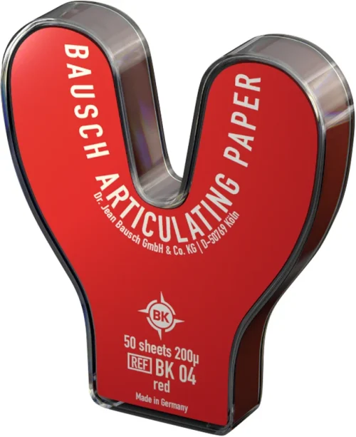 Bausch artikulasjonspapir med progressiv fargetoning 200 µ viser forskjellige bittkrefter gjennom kaudruksavhengig, fargeskjermet farging: Lett bitttrykk vises lys – Sterkt trykk vises mørkt. Bare Bausch artikulasjonspapir med progressiv fargetoning 200 µ kan så tydelig vise eksisterende kaudruksinterferenser. Etter justering eller lokalisering av feilkontakter bør det arbeides videre med tynnere testverktøy, som vi tilbyr opp til 8 µ tykkelse (Arti-Fol).