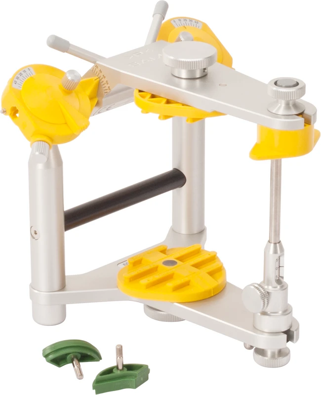 Karakteristika Arcon-konstruksjon, enkel sentrikklås ved hjelp av fjærbolteskrue, Bennettvinkel og kondylarbanehelling justerbar, utskiftbare kondylære hus og Bennett-føringsinnsatser, stort utvalg av tilbehør (fulljustering, totalprotese, etc.). For ART315M, SAM 2P, MPS artikulator for magnet-monteringsplater-system.