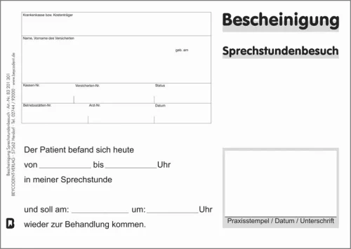 Bescheinigung über Sprechstundenbesuch