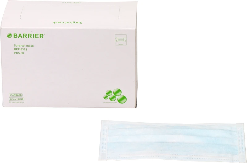 OP-maske med en bakteriefiltreringseffektivitet på = 98%. Kan leveres med bindebånd eller ørehemper. Den spesielt stabile nesebøylen forhindrer luftlekkasje ved maskekantene og sørger for luftsirkulasjon gjennom filteret.