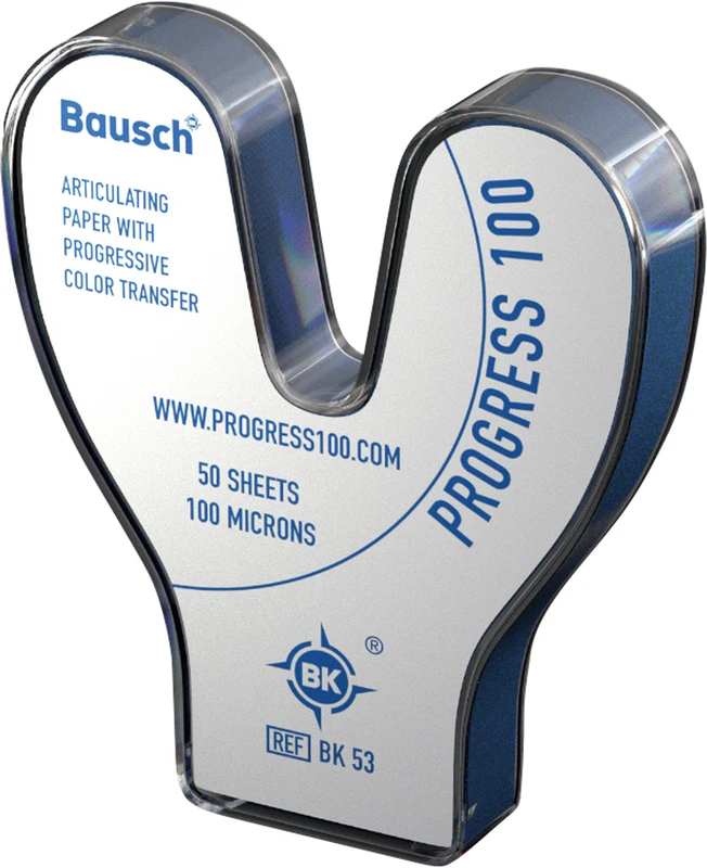 Dette fleksible fiberforsterkede papiret med høy fargeoppsamlingsvolum tilpasser seg nøyaktig okklusjonsflaten. Med sin progressive fargetoning markerer det presist de okklusale kontaktpunktene eller sentrale stoppene. Det bare 100 µm tynne papiret er impregnert med hydrofile vokser og farmasøytiske oljer. Gjennom den unike kombinasjonen med bindemiddelet Transculase kan også vanskelige kontakter på høypolerte metaller, høypolert keramikk eller fuktige overflater kontrolleres.