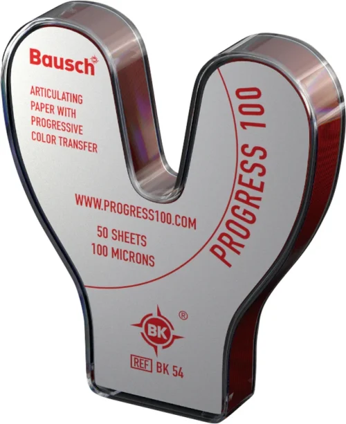 Dette fleksible fiberforsterkede papiret med høy fargeoppsamlingsvolum tilpasser seg nøyaktig okklusjonsflaten. Med sin progressive fargetoning markerer det presist de okklusale kontaktpunktene eller sentrale stoppene. Det bare 100 µm tynne papiret er impregnert med hydrofile vokser og farmasøytiske oljer. Gjennom den unike kombinasjonen med bindemiddelet Transculase kan også vanskelige kontakter på høypolerte metaller, høypolert keramikk eller fuktige overflater kontrolleres.