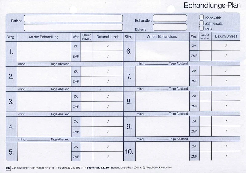 Skjema for behandlingsplanlegging for opptil 10 behandlinger.