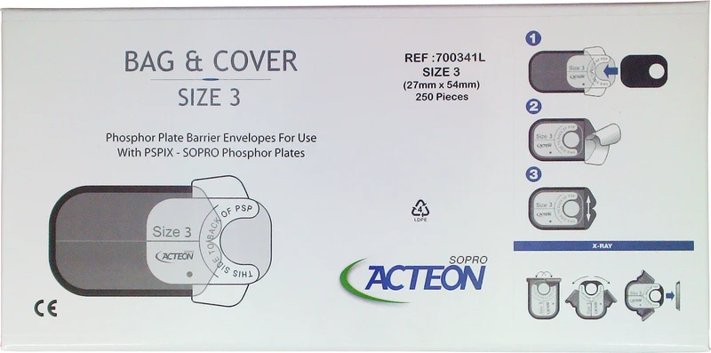 Bitebeskyttelsesposer med hygieneposer for PSPIX1 fosforplater.