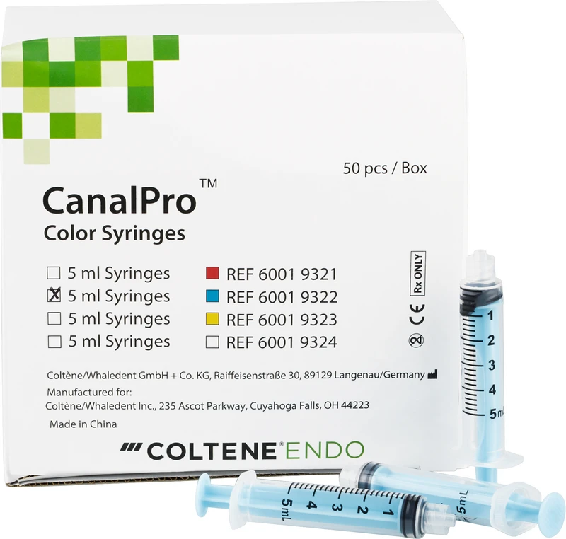 Sprøytene brukes til skylling av rotkanalen med forskjellige skylløsninger. Det komplette CanalPro skylløsningporteføljen er fargekodet for å unngå forveksling av de forskjellige skylløsningene og for å gjøre skyllingsprosessen enklere for tannleger og deres ansatte.