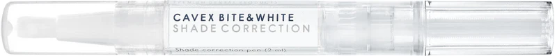 Cavex Bite&White Shade Correction er et raskt, sikkert og effektivt system for å gjenopprette pasientens naturlige tannfarge. Det er et in-office-system for medisinsk bleking. Hele behandlingen utføres av tannlegen i klinikken. Det revolusjonerende gelen i systemet muliggjør gjenoppretting av den opprinnelige tannfargen i løpet av kun 2-3 påføringer under én seanse. På grunn av den unike formelen virker gelen svært raskt. Dette minimerer behandlingstiden og dermed risikoen for overfølsomhet. De termoreversible egenskapene til gelen sørger for at den forblir perfekt på plass under behandlingen, noe som maksimerer sluttresultatet. Systemet består av en unik applikatorpenn med en børste for maksimal kontroll under påføring og en beskyttelsesbarriere for å beskytte det omkringliggende bløtvevet.