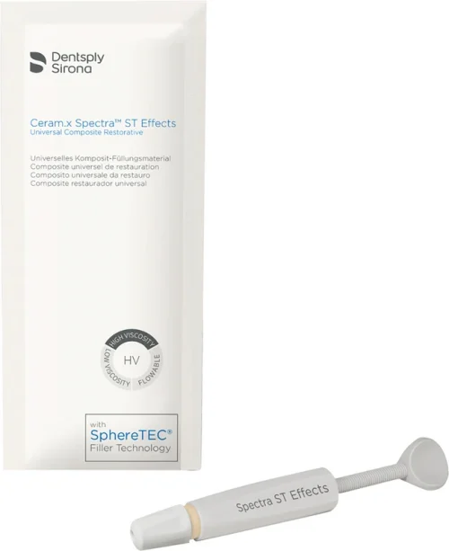Ceram.x Spectra™ ST Effects er en utvidelse til universalkompositt Ceram.x Spectra™ ST og er også basert på SphereTEC® fyllstoffteknologi. Den er spesielt utviklet for å optimalisere de viktigste områdene for behandleren: håndtering, estetikk og holdbarhet. Ceram.x Spectra™ ST Effects er tilgjengelig i totalt 3 farger, både i Compules® Tips og i sprøyter.