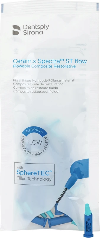 Ceram.x Spectra™ ST flow er det ideelle tillegget til universalkompositt Ceram.x Spectra™ ST og er også basert på SphereTEC® fyllstoffteknologi. Det er spesielt utviklet for å optimalisere de viktigste områdene for behandleren: håndtering, estetikk og holdbarhet. Ceram.x Spectra™ ST flow finnes i totalt 5 farger, både i Compula® Tips og i sprøyter.