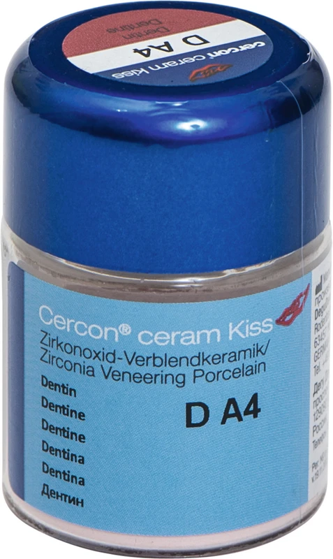 Cercon® ceram Kiss er en verblendingskeramikk som er spesielt og alene beregnet for verblending av kroner og broer av zirkoniumoksid (Y-TZP) med en WAK på 10,5µm/m·K (25 – 500°C).