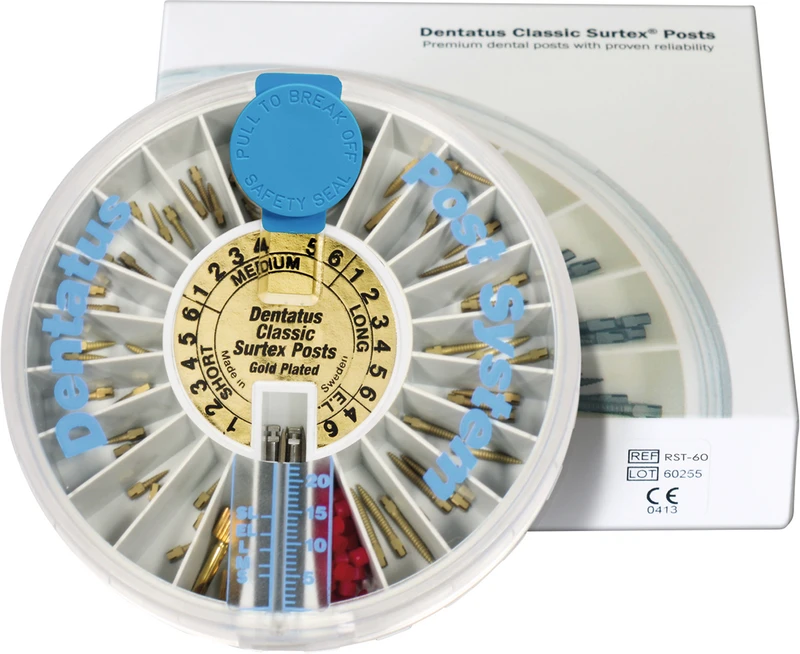 Dentatus Classic Surtex rotstifter har en mikrotekstur som gir betydelig høyere retensjon sammenlignet med ubehandlede stifter. Den spesielt teksturerte metaloverflaten fester seg betydelig bedre til plast og er mindre utsatt for mikrofrakturer.