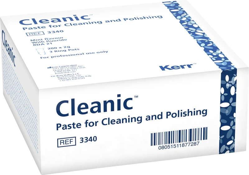 Cleanic™ er en en-trinns profypasta som garanterer utmerkede rengjørings- og poleringsresultater for pasienten med lav abrasjon av tennene i ett trinn, takket være den klinisk dokumenterte integrerte abrasjonsvariabiliteten av naturlige perlitpartikler.