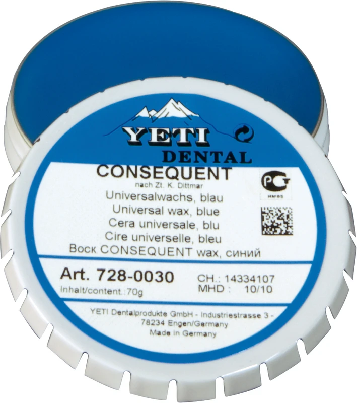 CONSEQUENT Universalwachs benyttes spesielt innen modellstøp, men også i oppvoksteknikk. Ved flerfarget modellering får man kontraster, slik at for tynne, utskrapte voks-overganger kan unngås.