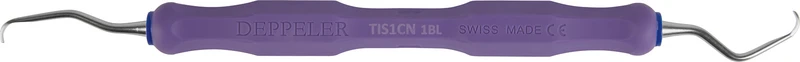 Effektiv uten å skade: implantatkurettene er laget av rent titan og er noe mindre harde enn implantatet, for skånsom bruk. Universalkurette i titan for fjerning av tannstein på titanimplantater.