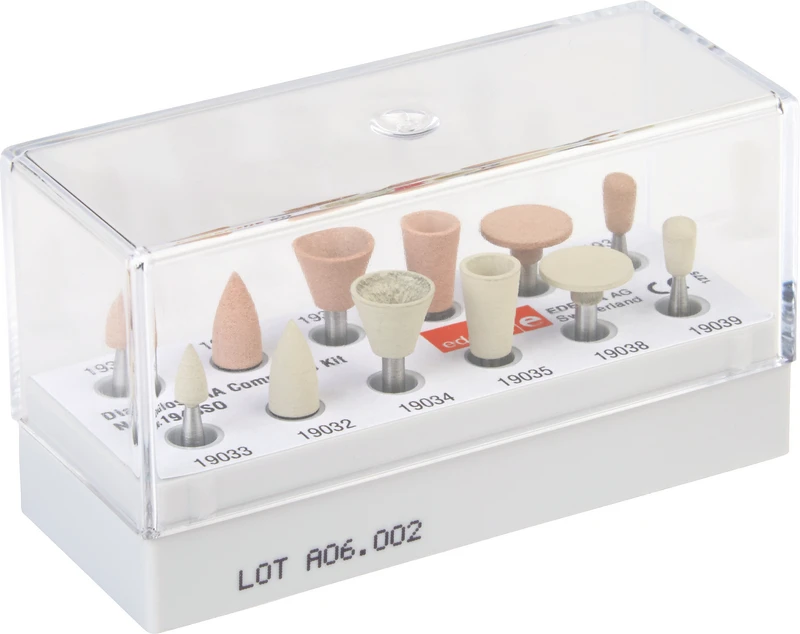 Spesielt diamant-impregnert overflatebehandlingssystem for forming og høyglanspolering av kompositter. Med fineren (rosa) får man raskt en glatt, forpolert overflate. Med poleren (hvit) oppnår man høyglanspolering på sekunder, uten støv og uten smøring. Settet inneholder 6 finere & 6 polere.