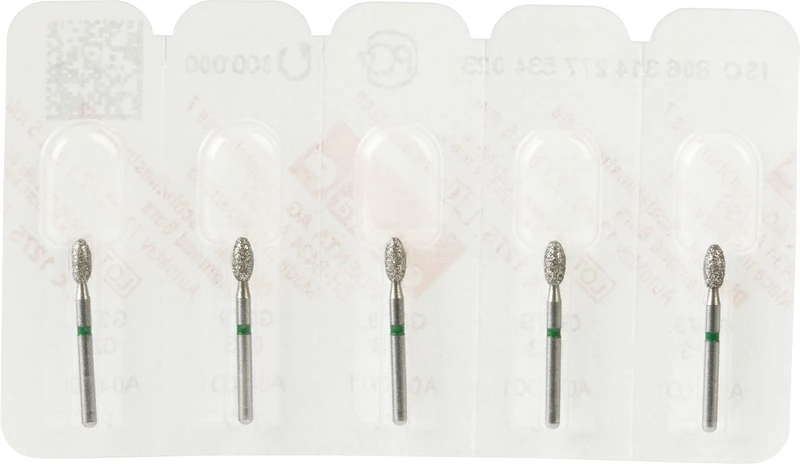 | Variant | <b>pakke</b> 5 diamanter grønn grov, FG, Figur 277 eggform, hodelengde: 3 mm, ISO 012 |