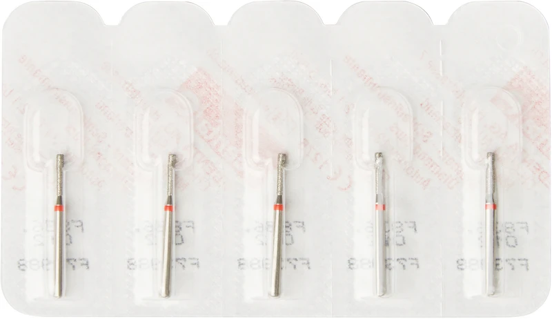 | Variant | <b>Pakke</b> 5 diamanter rød fin, FG, figur 110 sylinder flat, hodelengde: 6 mm, ISO 012 |