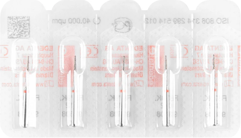 - rød (F) – fin – Til finsliping av forhåndspreparerte tannoverflater