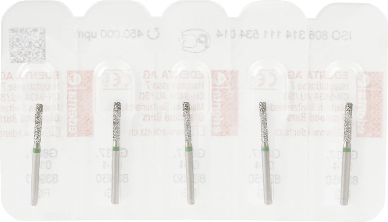 | Variant | Packung 5 Diamanten grün grob, FG, Figur 111 Zylinder flach, Kopflänge: 8 mm, ISO 014 |