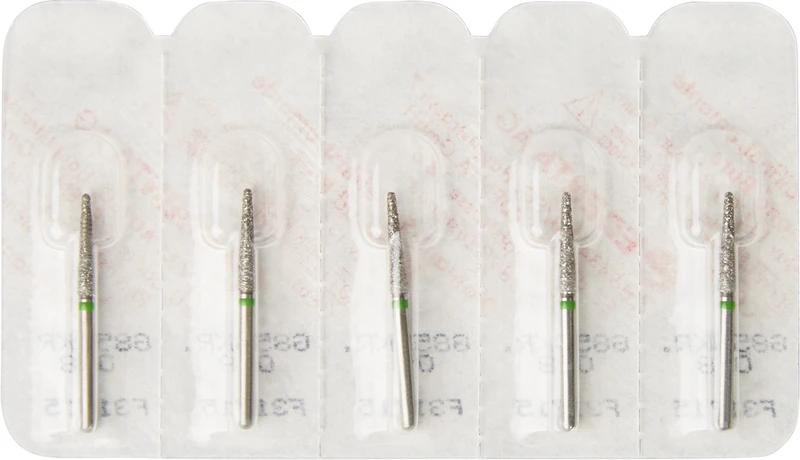 - rød (F) – fin – Til finsliping av forhåndspreparerte tannoverflater