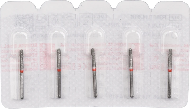 | Variant | Pakke 5 diamanter rød fin, FG, figur 198 kjegle rund, hodelengde: 8 mm, ISO 018 |