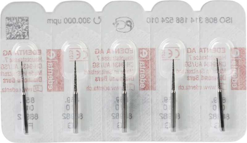 | Variant | Pakke 5 diamants standard, FG, figur 166 kjegle spiss, hodelengde: 10 mm, ISO 010 |