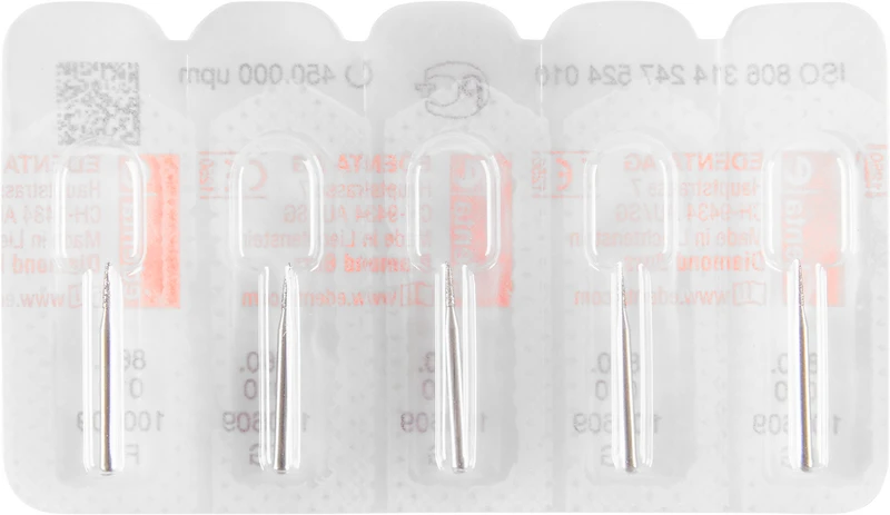 | Variant | Pakke 5 diamantborrer standard, FG, figur 247 flamme, hodelengde: 4 mm, ISO 010 |