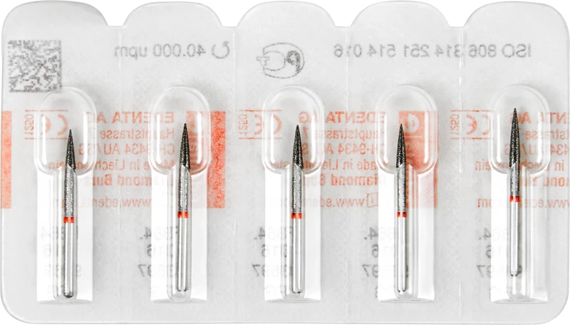 | Variant | pakke 5 diamanter rød fin, FG, figur 251 flamme, hodelengde: 12 mm, ISO 016 |