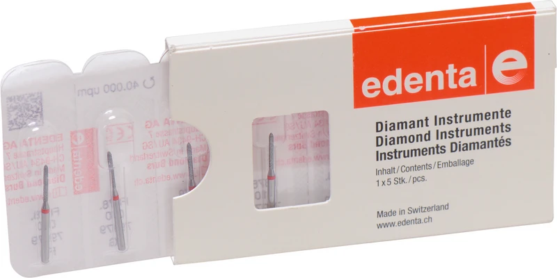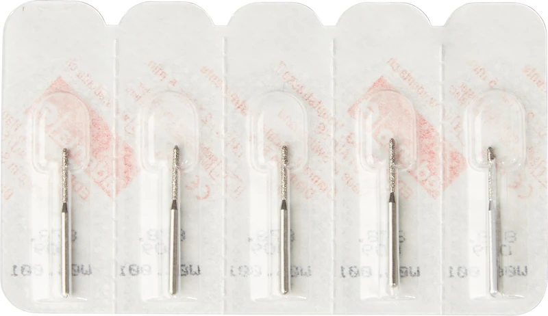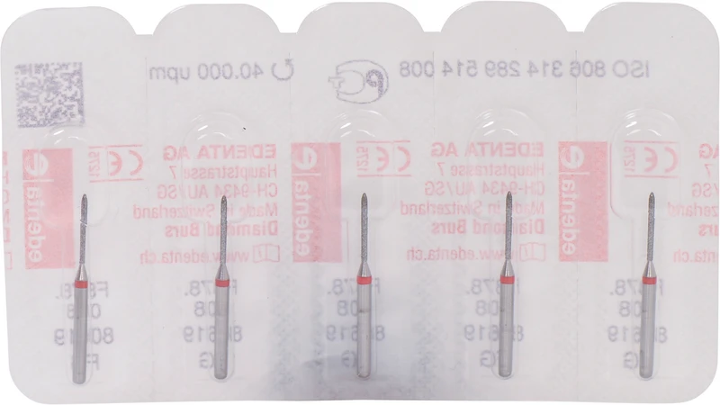 | Variant | <b>Pakke</b> 5 diamanter rød fin, FG, figur 298 Torpedo, kopplengde: 8 mm, ISO 018 |