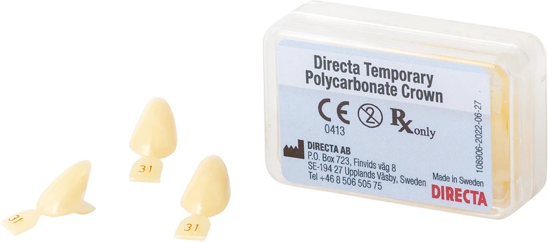 Leicht håndtering, passgenau for hver kvadrant. Det internasjonalt etablerte kodingssystemet muliggjør et enkelt valg. Directa Kroner består av høykvalitets, munnholdbar polykarbonat og kan slipes uten risiko for skade. Tilgjengelig i translucente og opake utførelser samt som molarkroner, hver i flere størrelser per kvadrant.