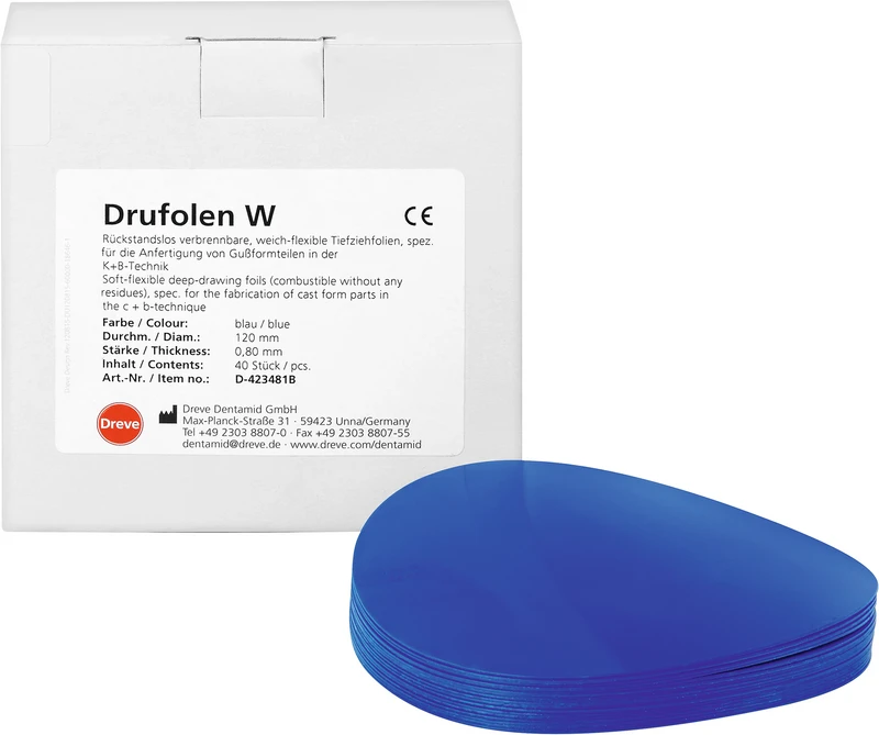 | Variant | <b>Pakke</b> 40 vakuumformfolier Ø 120 mm, blå, tykkelse 0,65 mm |