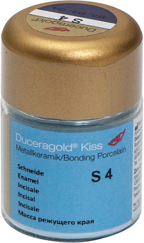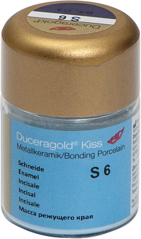 Duceragold®Kiss er dekk-keramikken for høyt ekspansive legeringer i WAK-området fra 16,2-17,6 µm/m •K og en del av det velkjente og i over 15 år velprøvde GoldenGate Systems. Duceragold®Kiss er også indisert for å dekke presskeramikken Cergo Kiss. En dekk-keramikk med dobbel nytte. Både utseende, materialegenskaper og den glatte overflaten med et naturtilpasset abrasjonsmønster tilsvarer den naturlige tannen.