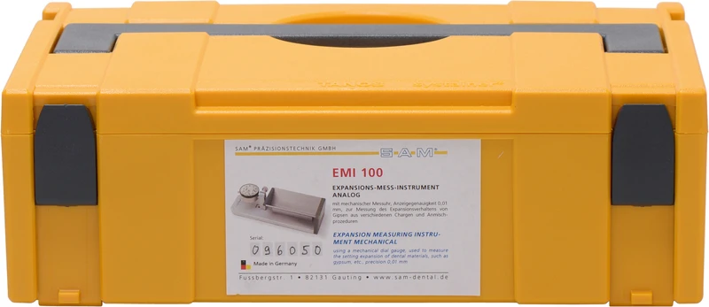 Ekspansjonsmåleinstrument, analog. Med mekanisk måleur, visningsnøyaktighet 0,01 mm, for måling av ekspansjonsatferden til gips fra forskjellige partier og blandingsprosedyrer.