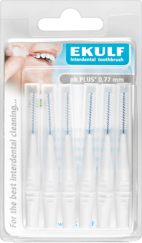 De EKULF Interdentalbürsten ph PLUS+ er designet for de som trenger et litt større grep. Utstyrt med høykvalitets børster, tilbyr den utmerket rengjøringsegenskaper. Den plastbelagte tråden er skånsom mot tenner og tannkjøtt. Hver børste leveres med et beskyttelsesdeksel som også kan brukes som grepforlengelse.