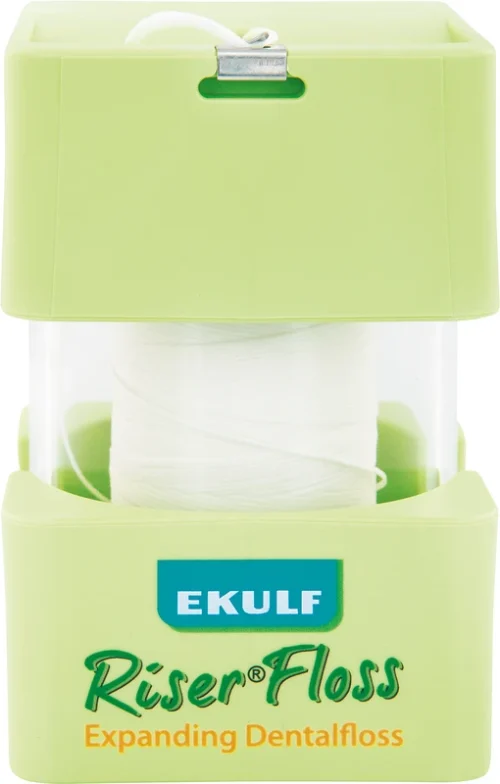 EKULF Riser® Floss er en eksklusivt patentert tanntråd som utvider seg ved friksjon og dermed rengjør tennene på best mulig måte. Tråden har en tynn belegg av bivoks og plantevoks for bedre grep. I tillegg oppnås en mykere og finere følelse når man rengjør mellom tennene. Ved aromatisering med bergamot/lime får du en frisk følelse i munnen.