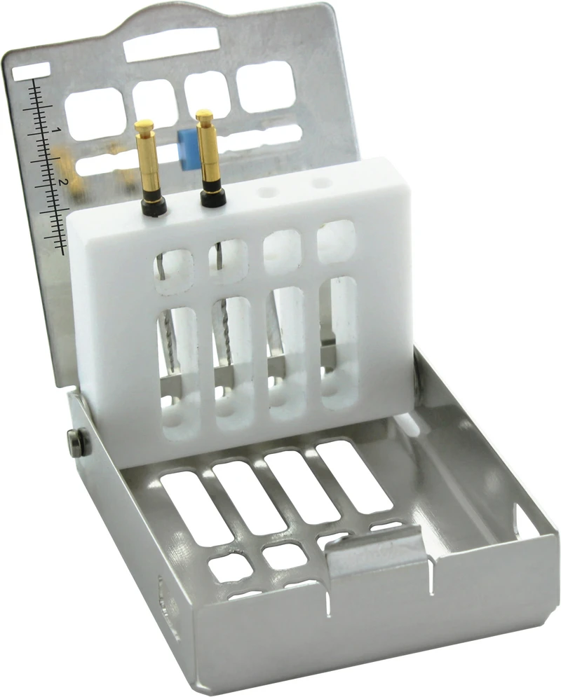 Endo Pro består av rustfritt stål og teflon og er utstyrt med et endometer og et selvlåsende dekselssystem. Ideell for bruk i ultralydbad, rengjørings- og desinfeksjonsenheter. Endo Pro har en silikonkursor på dekselet som kan telle antall brukte prosedyrer. Hull i dekselet for bedre rengjøringsprosess.