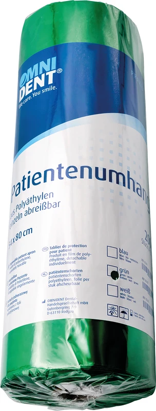 Stor pasientkappe, med halsutskjæring og bånd. Laget av PE-folie.