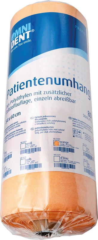 Av tynn PE-folie, med absorberende celluloseunderlag. Med halsutskjæring og bånd.