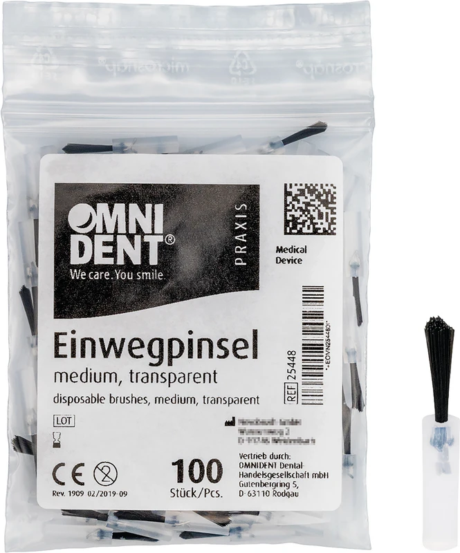 Nylonhårpensel for enkel påføring av væsker og geler. Ulike utførelser. I gjenlukkbar klar plastpose.