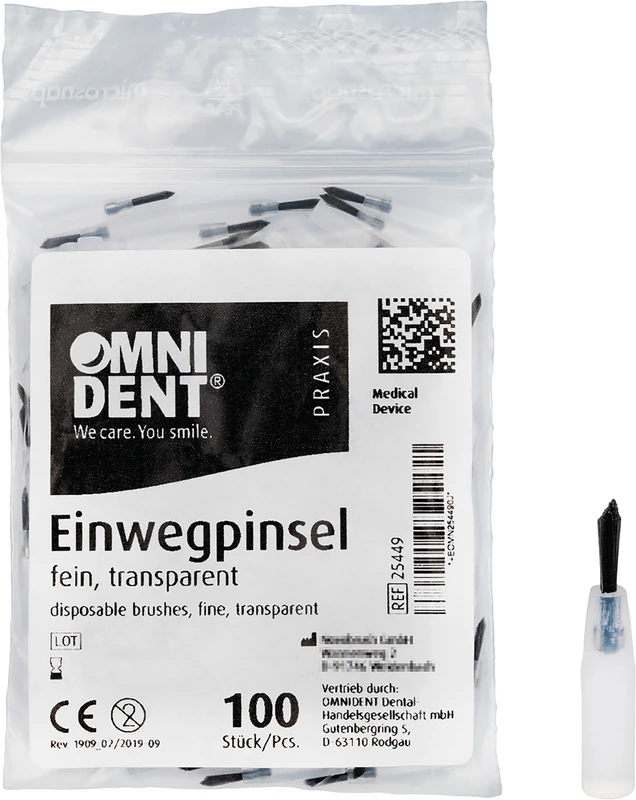 Nylonhårpensel for enkel påføring av væsker og geler. Ulike utførelser. I gjenlukkbar klar plastpose.