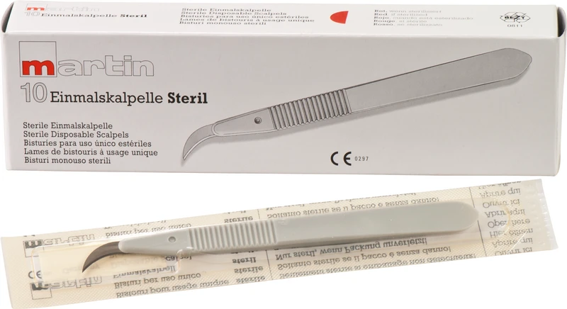 Sterilt pakket engangsskaler med plastgrep, rustbestandig.