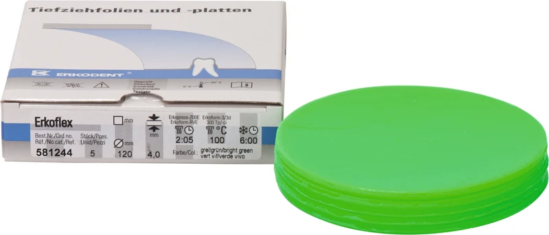 | Variant | <b>Pakke</b> 5 vakuumformingsfilmer Ø 120 mm, tykkelse 4 mm, neongrønn |