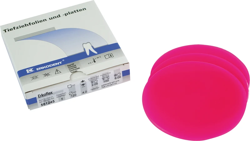 | Variant | <b>Pakke</b> 5 vakuumformingsfilmer Ø 120 mm, tykkelse 4 mm, neonrosa |