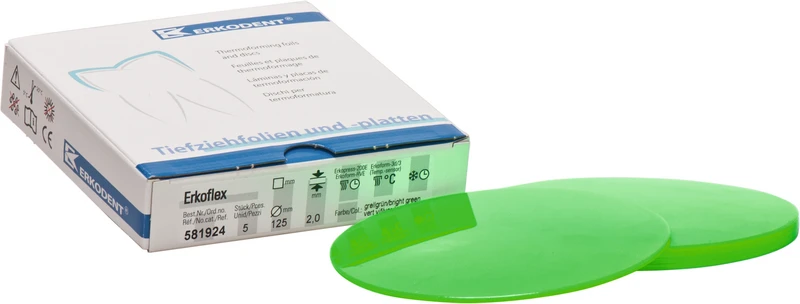 <div><strong>Pakke</strong> 5 vakuumformingsfolier Ø 125 mm, tykkelse 2 mm, neongrønn</div>