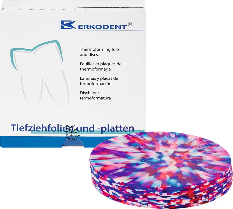 | Variant | <b>Pakke</b> 5 vakuumformingsfolier tie-dye, Ø 125 mm, tykkelse 4 mm |
