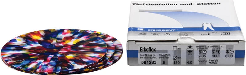 | Variant | <b>Pakke</b> 5 vakuumformingsfolier rainbow, Ø 120 mm, tykkelse 2 mm |